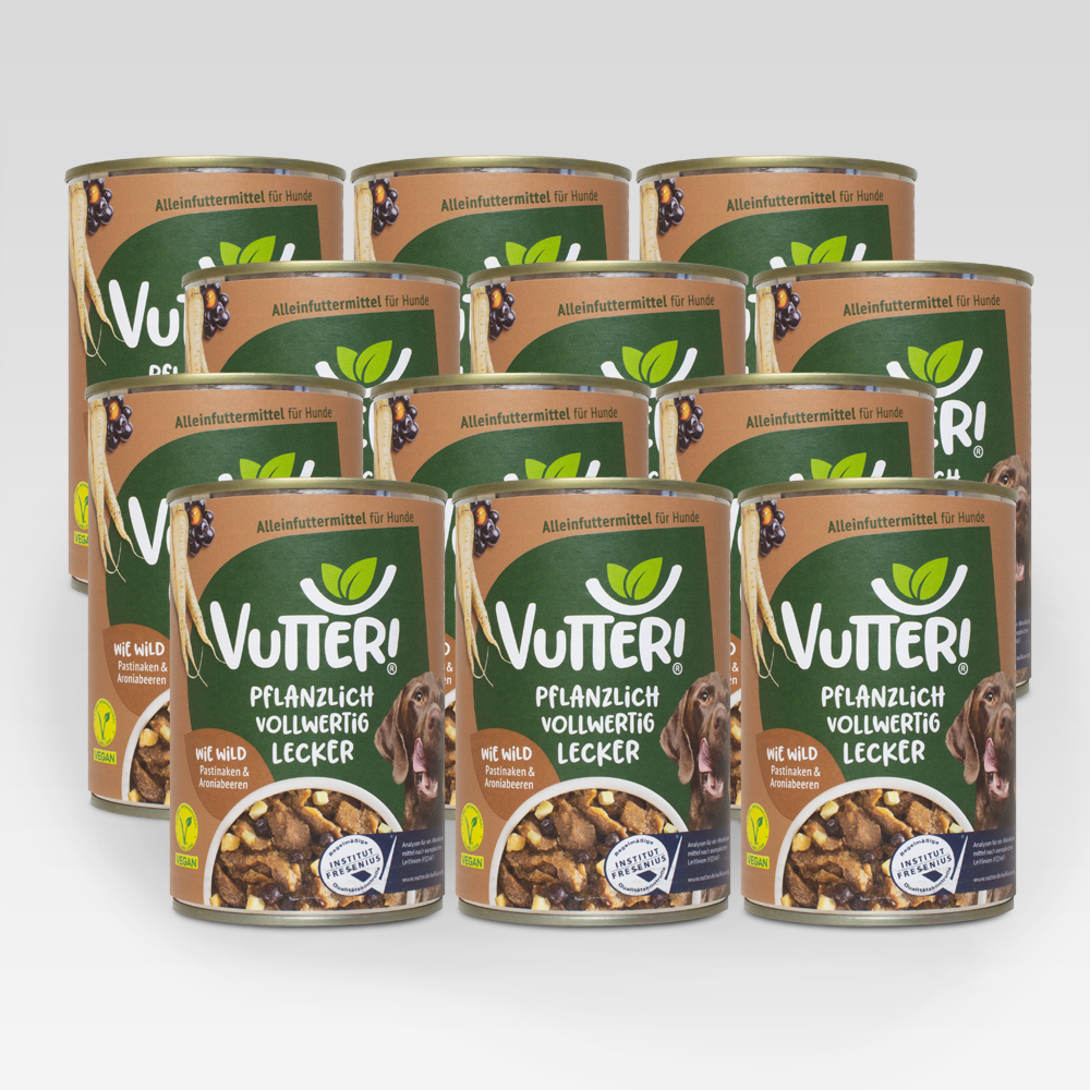 Wir haben jahrelang geforscht und entwickelt, um ein veganes Hundefutter zu schaffen, das die gleichen Nährwerte liefert wie ein herkömmliches Produkt. Jede Dose ist gefüllt mit hochwertigen Proteinen, essentiellen Aminosäuren, Vitaminen & Mineralstoffen – also mit allem, was dein Hund für ein gesundes Leben benötigt. Und das, ohne dass du zusätzliche Nahrungsergänzungsmittel füttern musst. Denn: Als veganes Alleinfuttermittel erfüllt „Nassfutter: Wie Wild“ alle ernährungsphysiologischen Anforderungen deines Hundes.